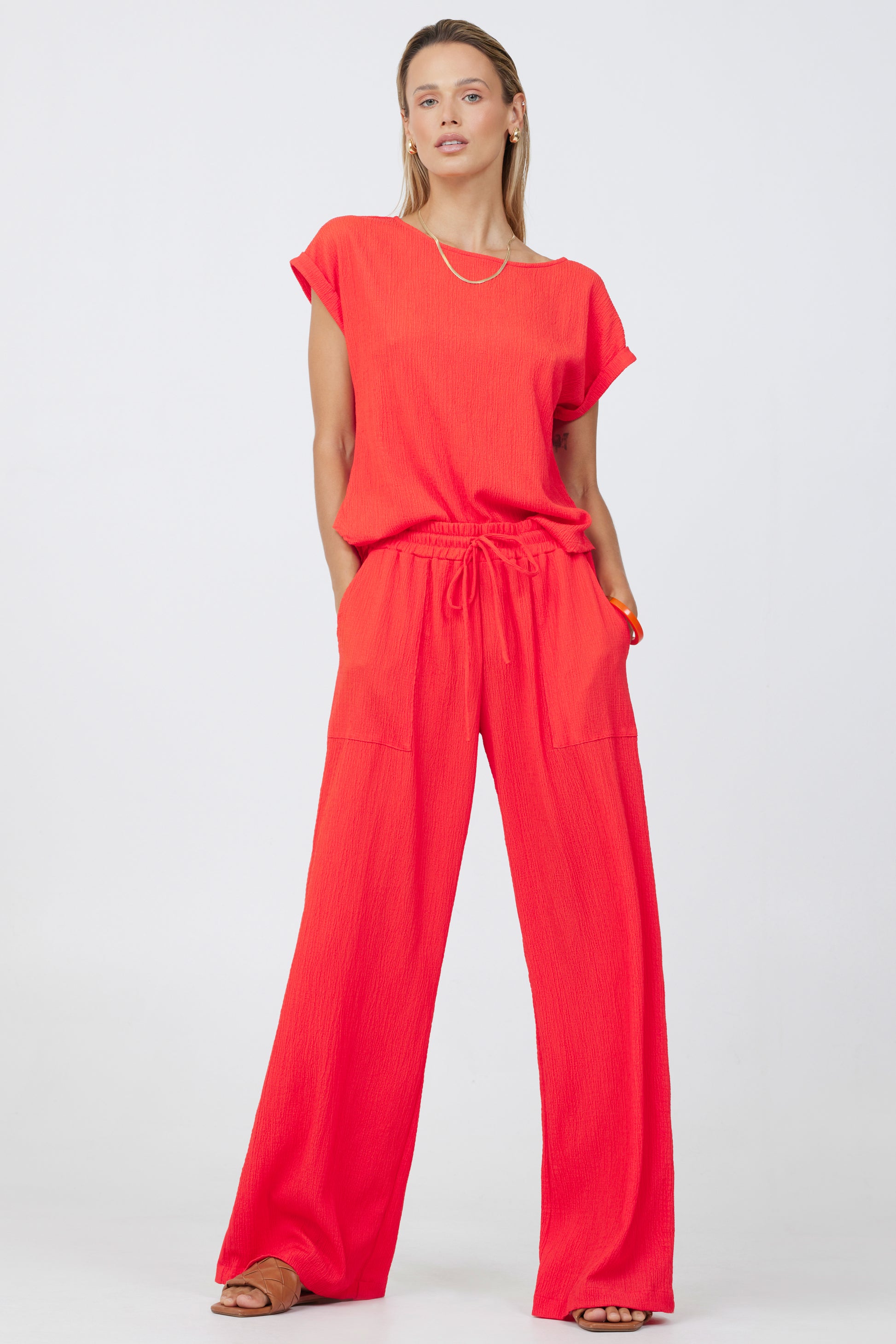 Crinkle Texture Roll Sleeve Tee